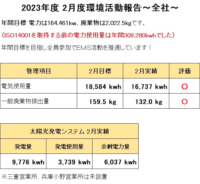 2023年度2月 環境活動報告~電力&廃棄物~