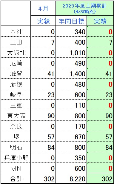 各営業所における実績は下記の通りです。