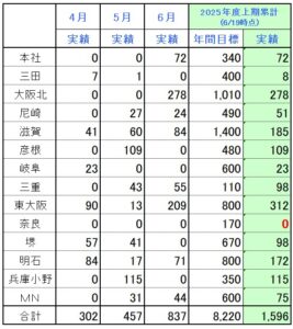 各営業所における実績は下記の通りです。