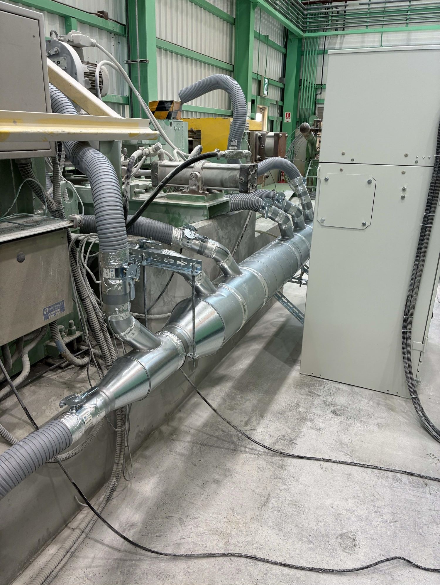 集塵ホースの口数を増やし、粉塵の発生源により近づけることで、吸引効率を向上させる提案を行いました。具体的には、集塵ダクトの増設を行い、より多くの吸引口を設置しました。