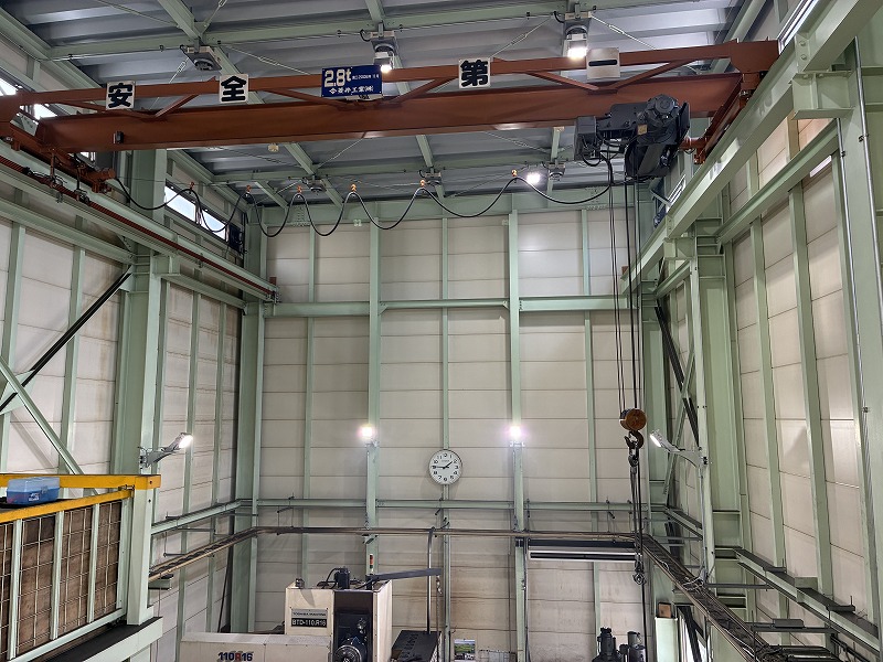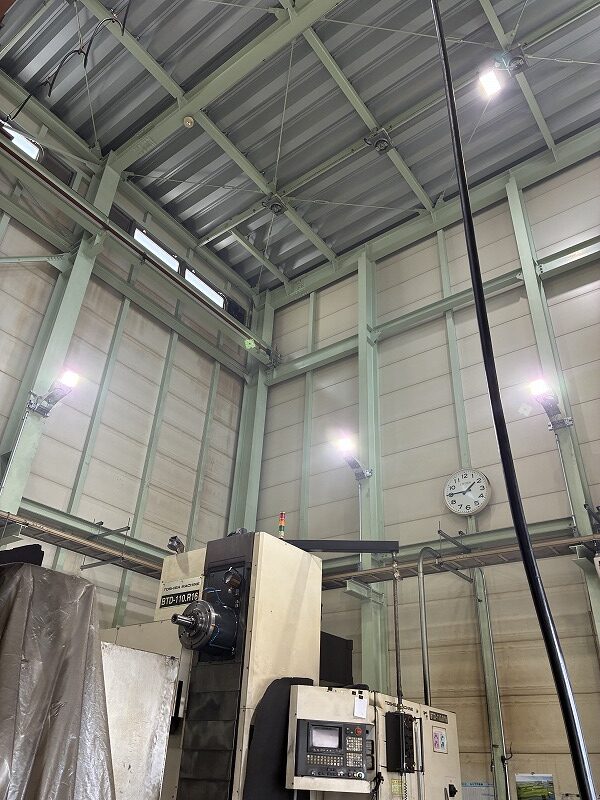 設置場所は天井が高く、今後のことを考えると照明機器の交換が困難になるため、壁面に4灯設置することをお勧めしました。4灯設置することで機械の影になるところもほぼない状態になりました。