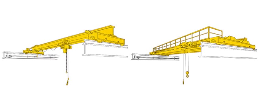 天井とレールの間に空間を設ける必要はありますが、天井梁下までの空間を有効利用できるため、揚程を高く確保できるメリットがあります。また、オーバーヘッドクレーンは、レールのガーターの数に応じて、2つの構造に分けられます。シングルガーターは1本のガーター上を走行し、ダブルガーターは2本の平行なガーター場を走行します。ダブルガーターは、シングルガーターと比べて大容量のクレーンに設置されており、ロングスパンの荷物にも対応できます。