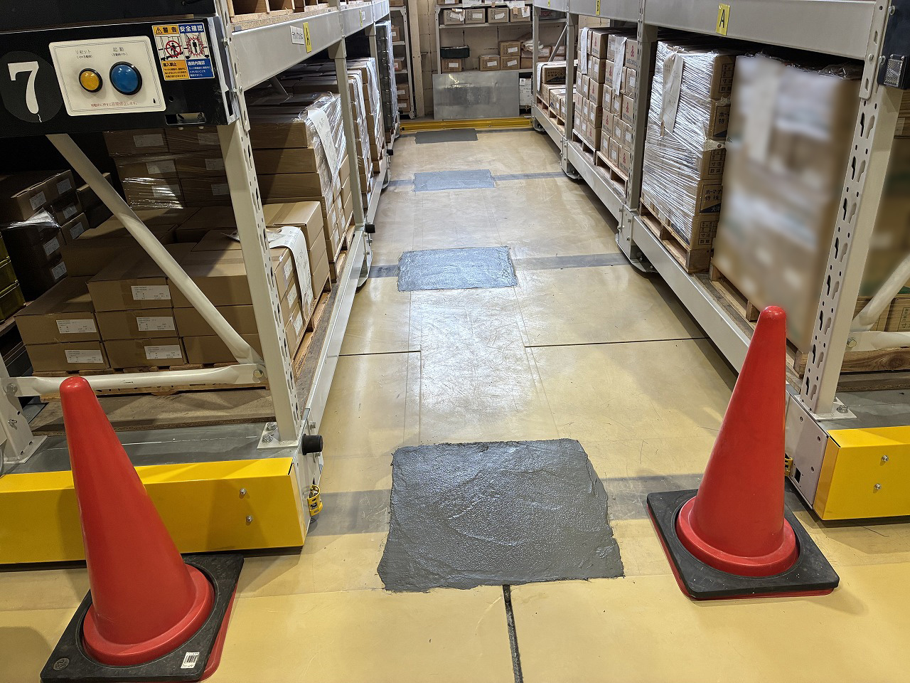 工場内倉庫のシャッターボックス取替および土間改修をしました。