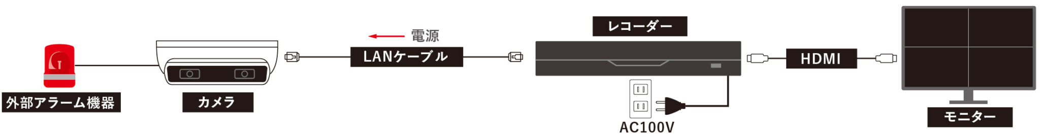 外部アラーム機器の組み合わせで、異常を検知するとアラームを出力することができます。
