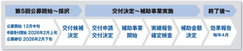 第5回公募の申請受付開始は2月上旬、公募締切は2月下旬を予定しています。