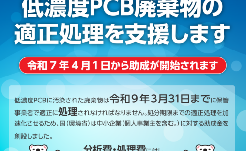 【助成金】低濃度PCB廃棄物処理支援事業