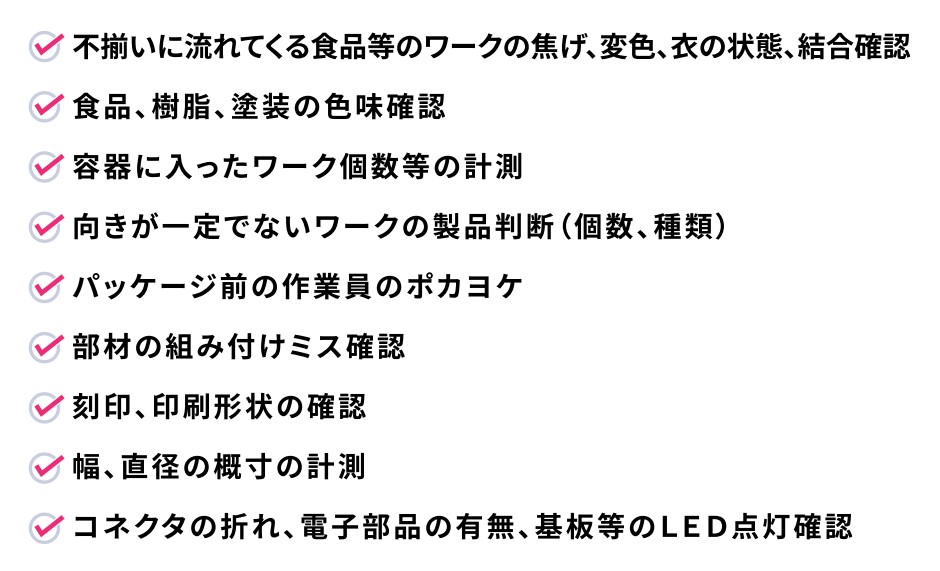 簡易検査、数カウント、作業員のポカヨケなど、目視検査の自動化を実現できます。