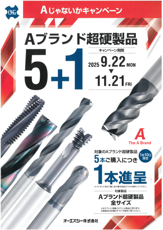 対象のAブランド超硬製品5本ご購入につき1本サービス致します。
