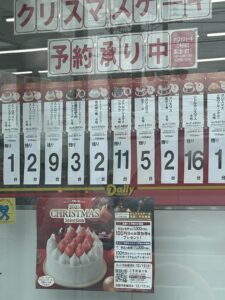 今日、仕事の合間にふらっとコンビニに寄ったときに入口の横に、クリスマスケーキの予約状況を知らせる張り紙が貼ってありました。
