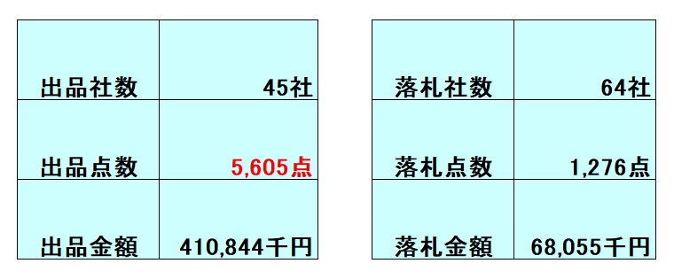 東大阪市の大阪機械卸業団地協同組合展示場にて9月6日に入札開票されました 第208回機械工具入札会(中古市)の結果報告です。 来場者数は1,128名 投票総数は2,156票 出品点数は5,605点 落札点数は1,276点でした。