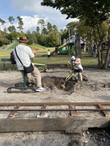 息子を誘ってみたものの、遊具で遊ぶのに夢中で、
