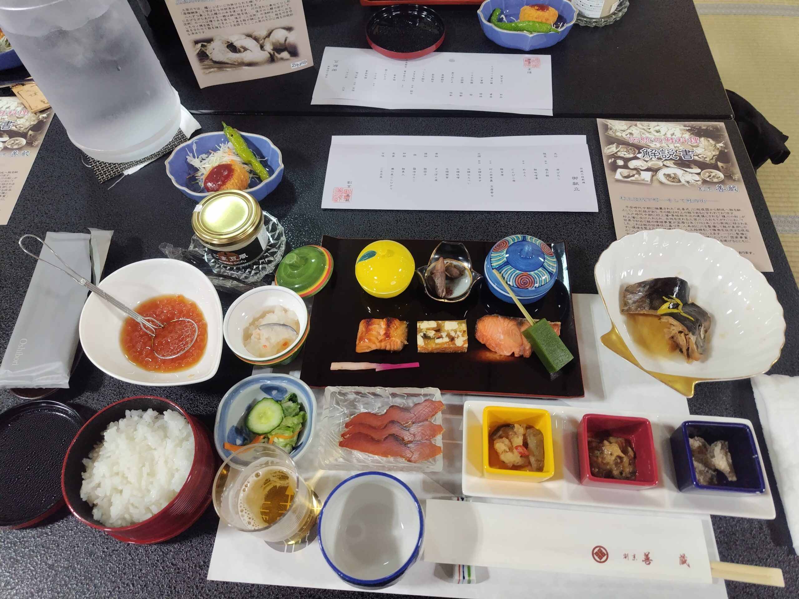 到着後は村上市へ移動し、鮭づくしの昼食を頂きました。