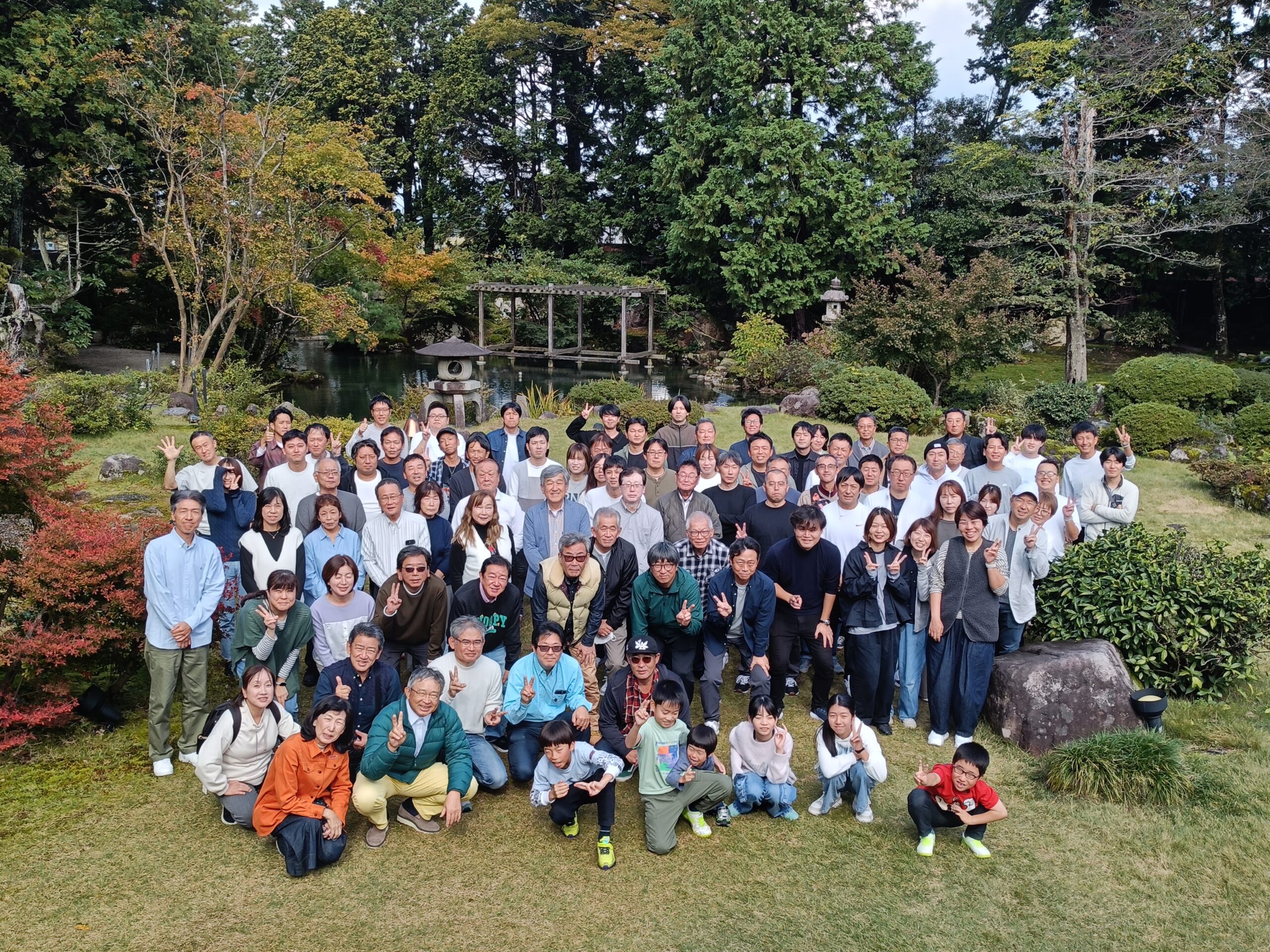 美しいお庭で集合写真を![]()