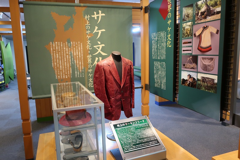 ↑ 鮭の皮で作ったジャケットまで展示されていました!(イヨボヤ会館)