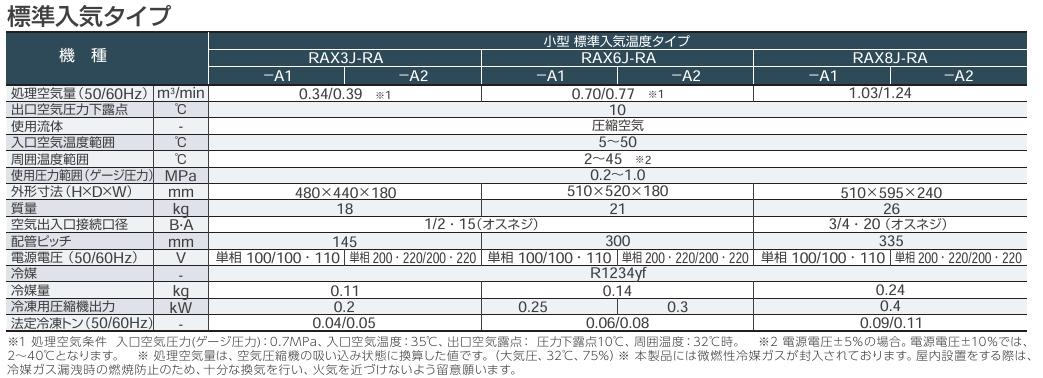 ノンフロンタイプのエアードライヤー