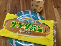サラダパンとはシンプルなコッペパンにマヨネーズで和えた沢庵を挟んだものです。