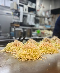 目の前の鉄板で焼いてくれるお好み焼きは