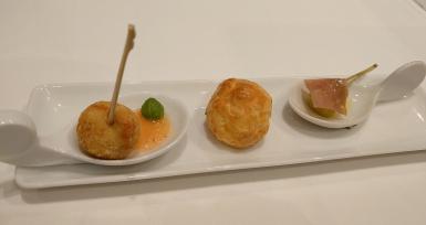 メニュー外のお料理。一番右は銀杏の上にベーコンがのっています。