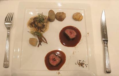 ・蝦夷鹿ロース肉のロースト 季節の茸と野菜のボルドー風