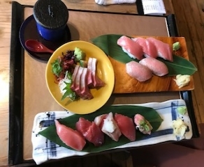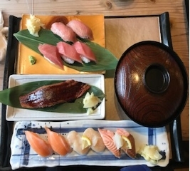 板さんおすすめ握り、大うなぎ1本にぎり、半身煮穴子握り たこの刺身