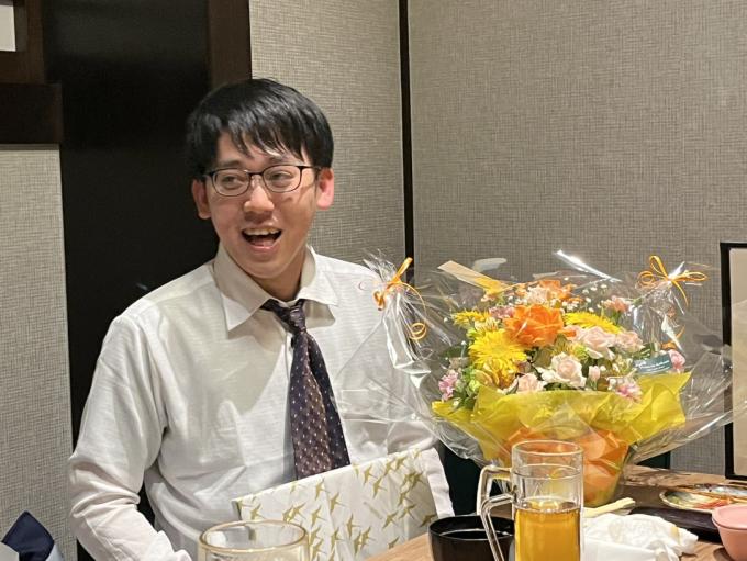 今回の食事会では坪内社員の結婚のお祝いもすることが出来ました。