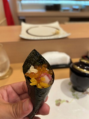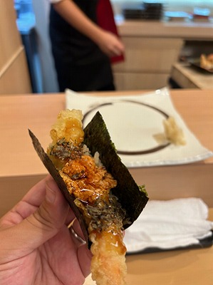 目の前で握ってもらうお寿司と揚げたての天ぷら、とても美味しかったです。