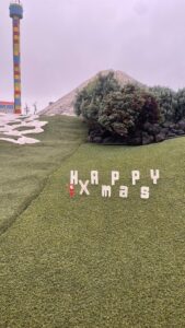 入り口にはおおきなクリスマスツリーに、たくさんのレゴで作られた飾りたち。